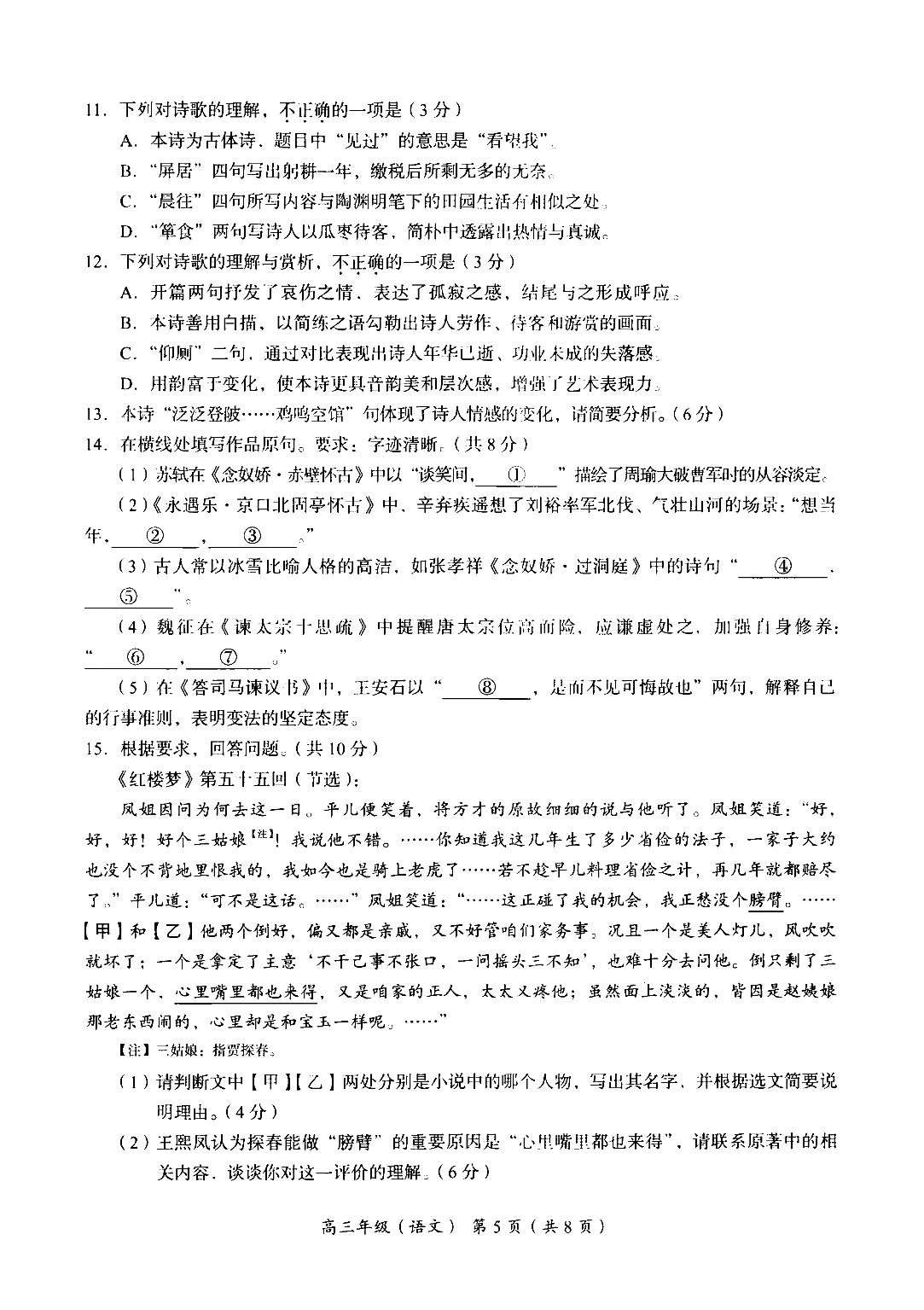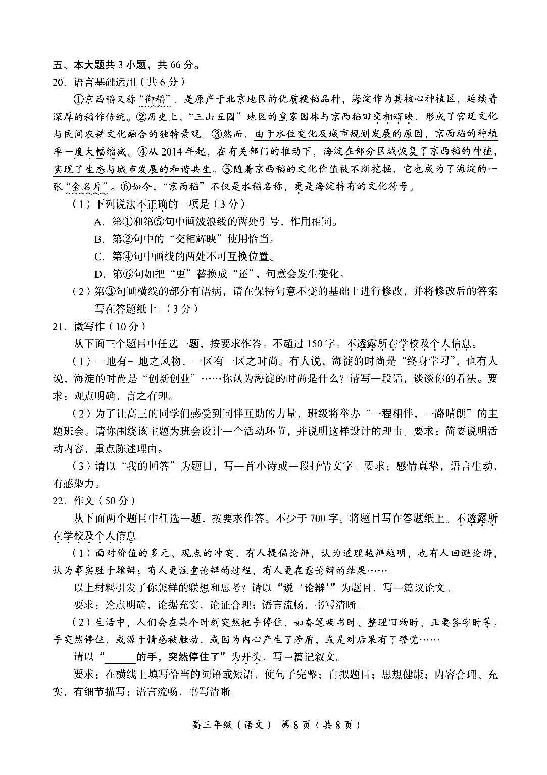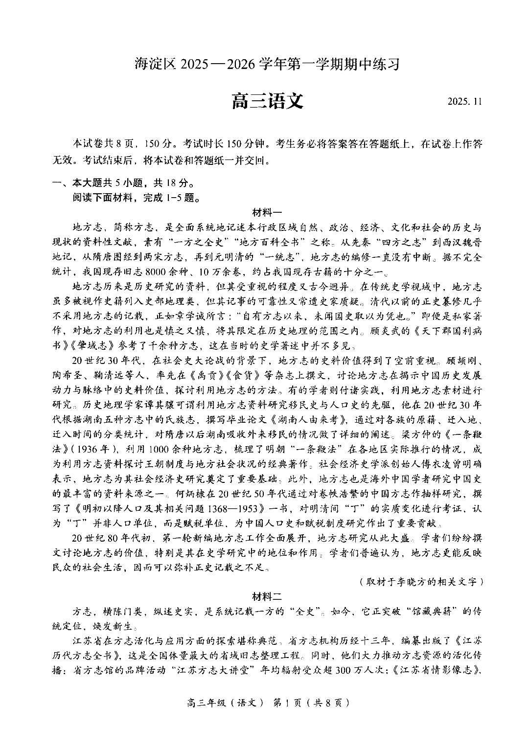 海淀区2025-2026学年高三年级期中考试语文试题