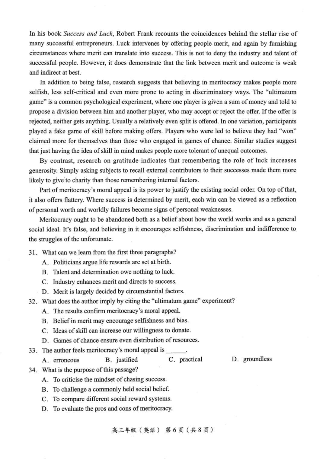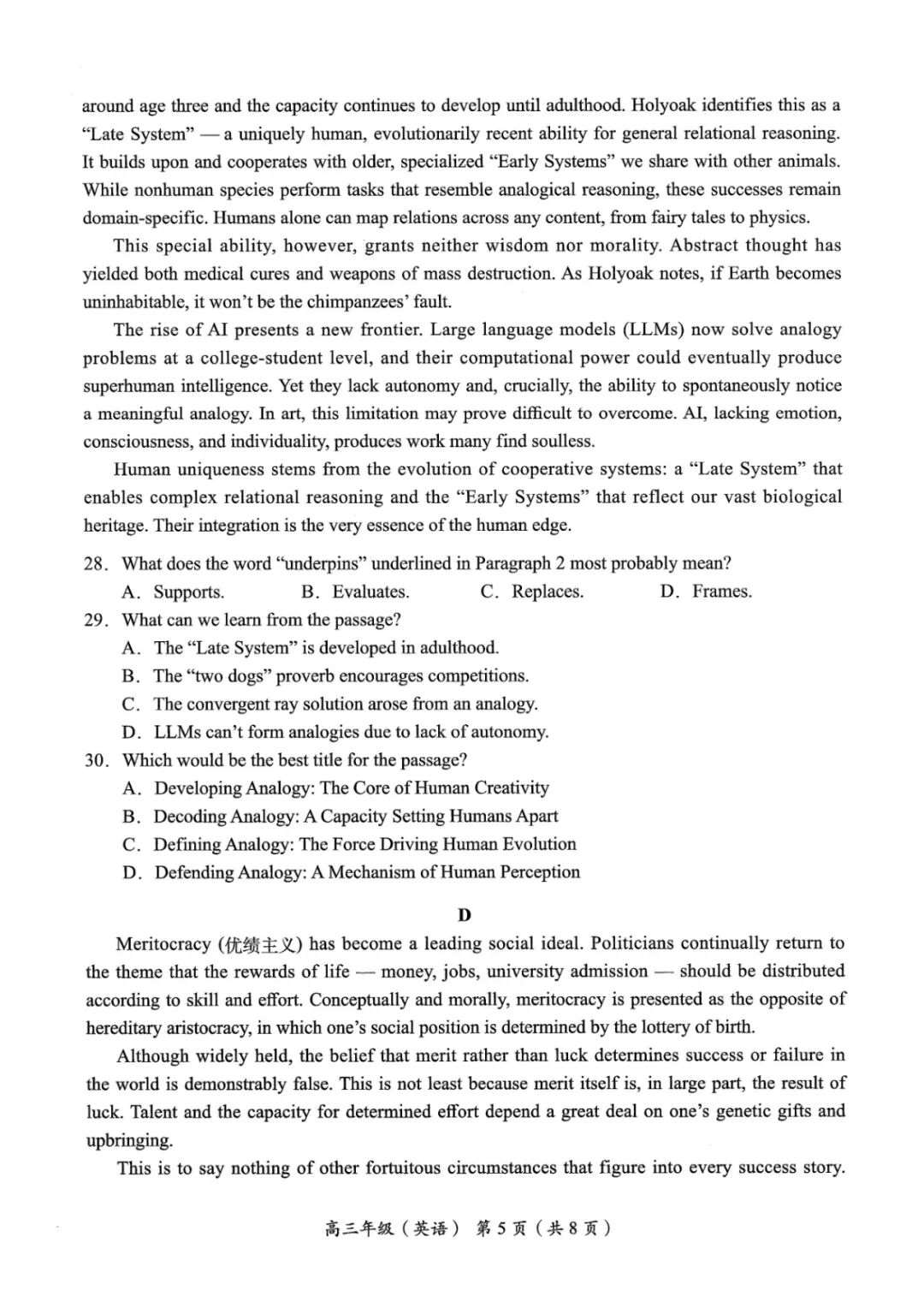 海淀区2025-2026学年高三年级一模考试英语试题